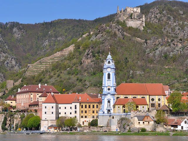 Crucero. Pensión completa. Amanecemos navegando rumbo a DÜRNSTEIN, uno de los extremos del turístico VALLE DEL WACHAU. Este valle, patrimonio de la humanidad, destaca por sus bellos paisajes vinícolas, y los castillos y monasterios que coronan sus colinas. Tras el desayuno iniciaremos este tramo de 35 km que nos llevará sobre el mediodía a Dürnstein.Por la tarde dispondrán de tiempo libre para disfrutar de este hermoso pueblo donde podrán degustar sus famosos vinos blancos y licores de albaricoque, podrán recorrer su calle comercial y los más valientes subir a las ruinas del castillo donde estuvo prisionero Ricardo Corazón de León. Antes de la cena retomamos la navegación. Noche de navegación.